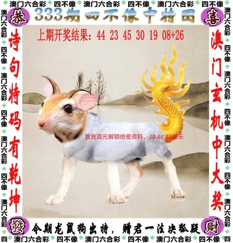 野兽生肖:猴,蛇,龙,兔,虎,鼠